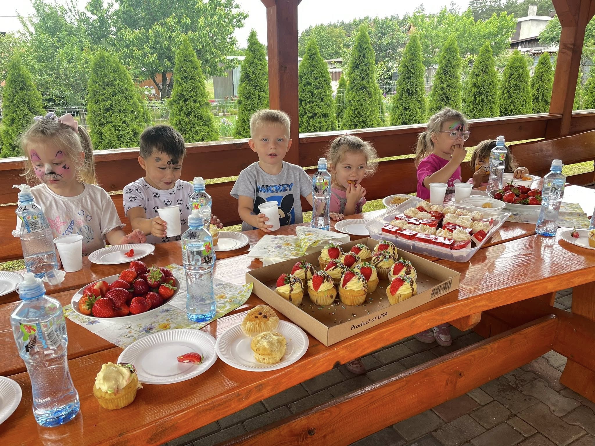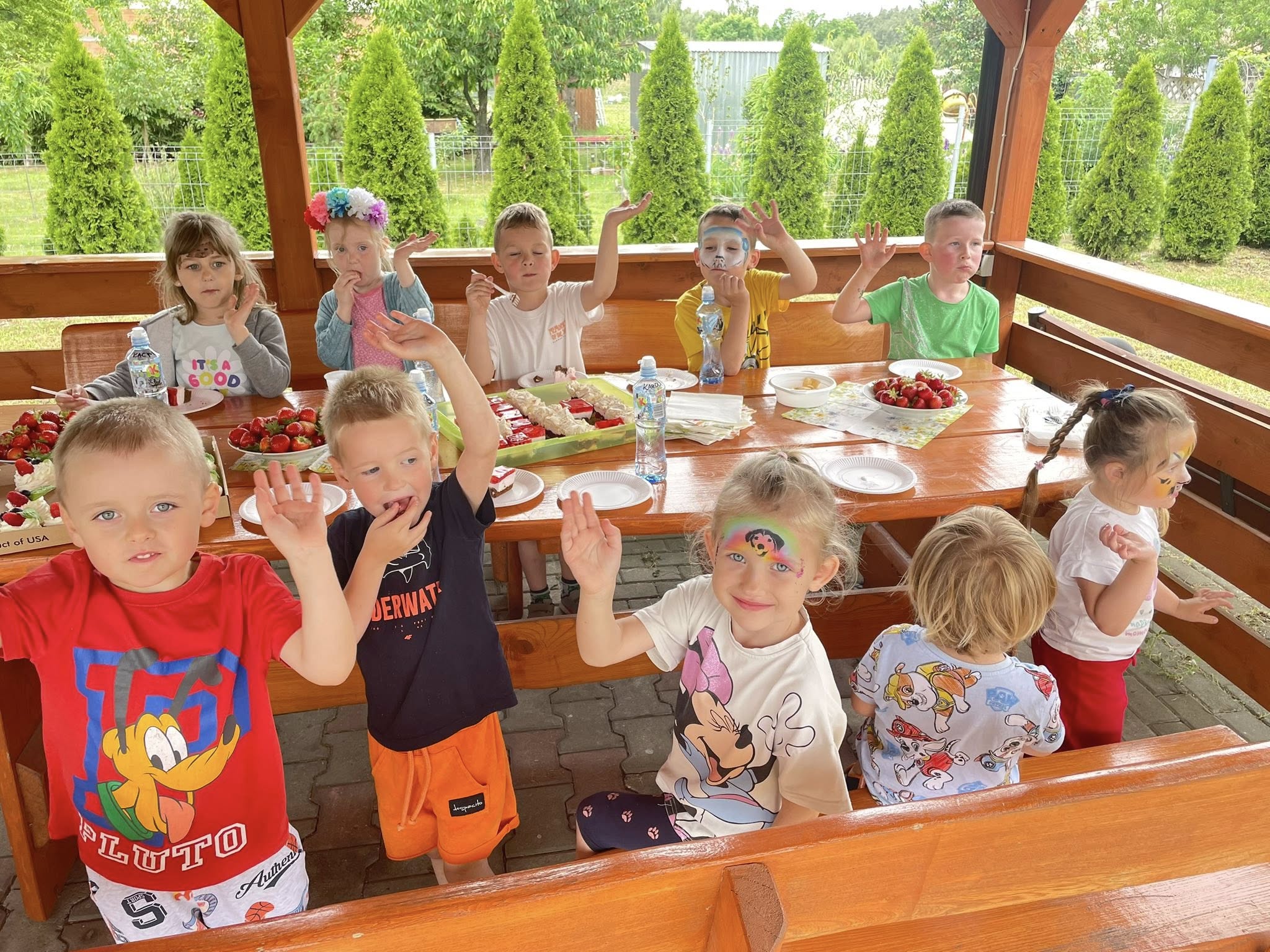 Dzień dziecka w naszym przedszkolu! Stitch i Angel, dmuchany plac zabaw, bańki mydlane, malowanie twarzy, tatuaże, ognisko z kiełbaskami, pieczone ziemniaki, wata cukrowa, truskawki, lody i inne słodkości, OSP KSRG Sędziejowice Modne Słodziaki KGW Dobrowianki Truskawkowa Magia. Bardzo dziękujemy wszystkim Rodzicom zaangażowanym w organizację tego dnia.