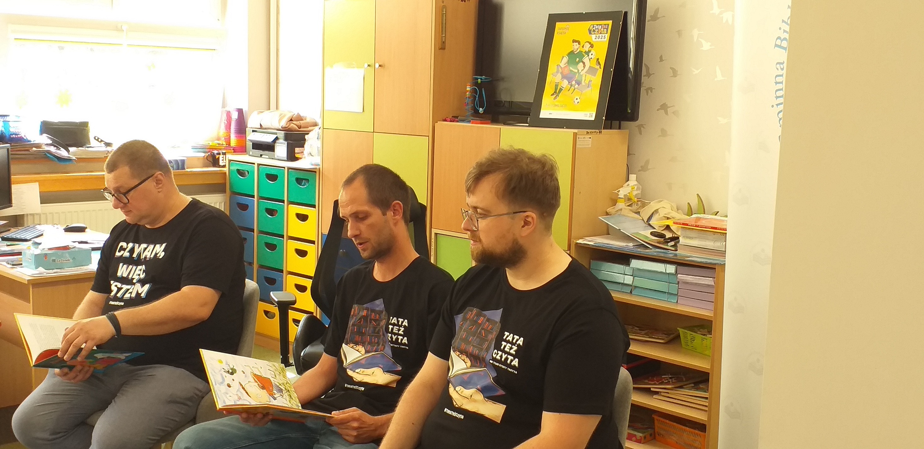 W ramach ogólnopolskiej akcji „Tata też czyta” zostaliśmy odwiedzeni przez Gminną Bibliotekę Publiczną w Sędziejowicach, by wspólnie z dziećmi przeżyć wyjątkowe chwile z książką. Tym razem w roli czytających wystąpili: pan Piotr, pan Stefan oraz Wit Leśniewicz, dyrektor Gminnej Biblioteki Publicznej w Sędziejowicach.
