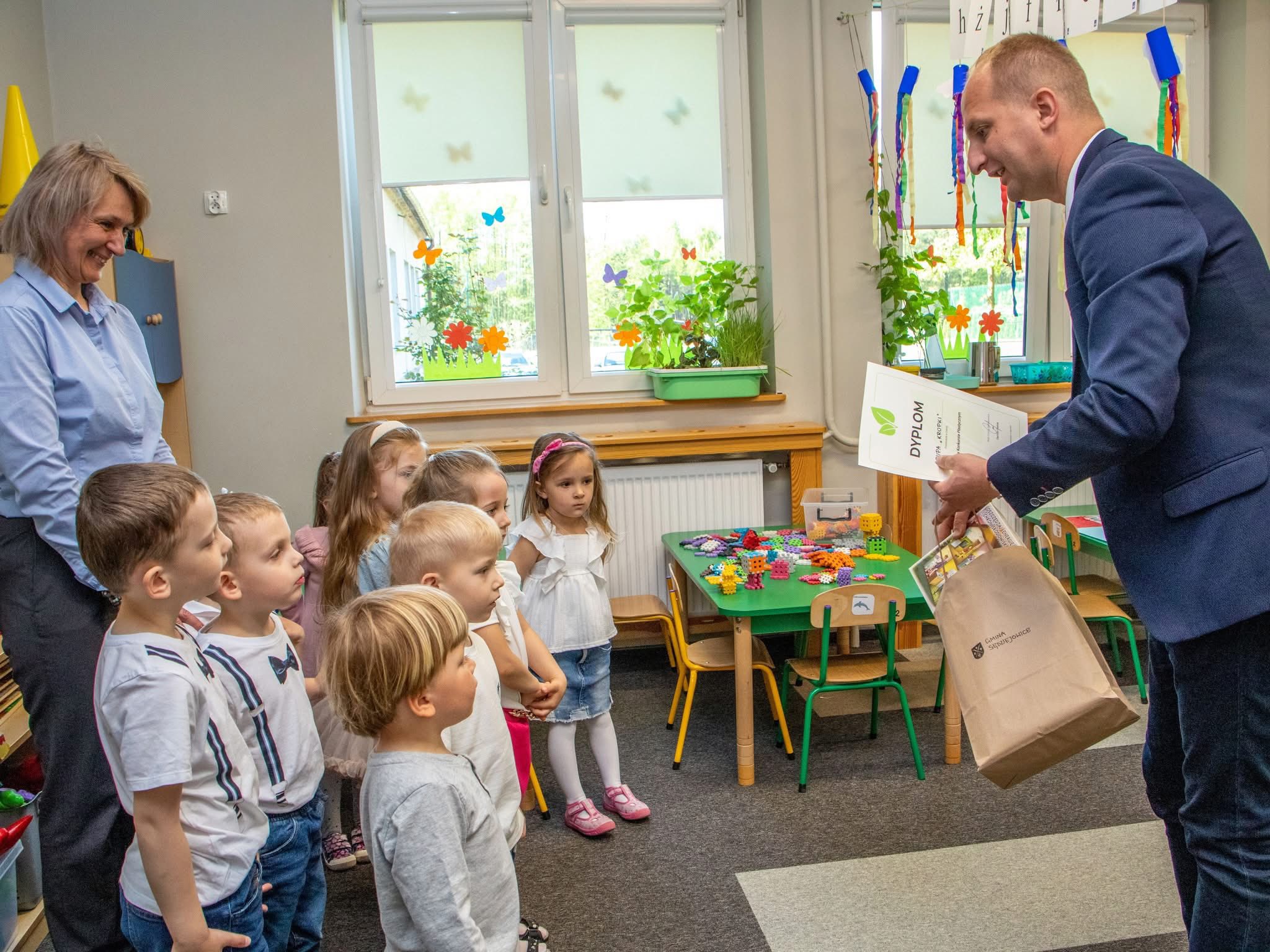 Rozstrzygnięcie konkursu ekologicznego w ramach projektu „Nie wyrzucaj – ograniczaj, odtwarzaj, oddawaj – kampania edukacyjna Gminy Sędziejowice”. Nagrody wręczył Wójt naszej gminy- Dariusz Cieślak.
